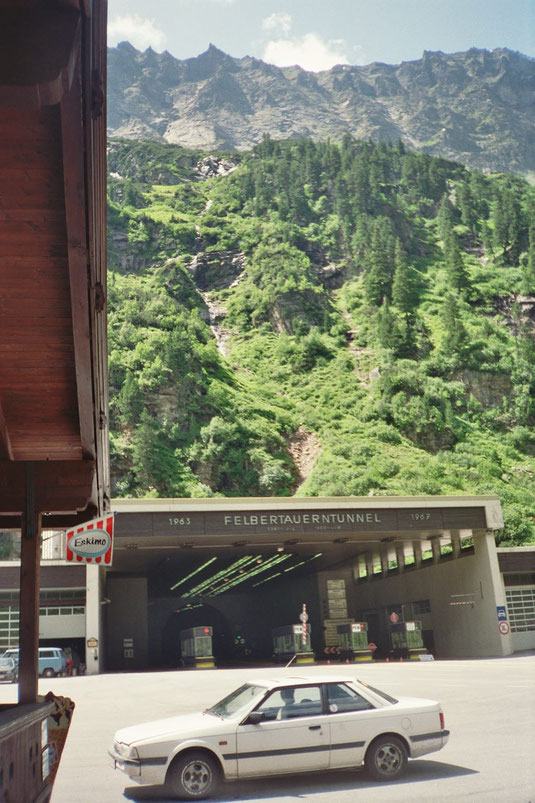 Mit einem weiteren einheimischen Radler aus Mittersill und seiner Mopedbegleiterin wurden wir samt unseren Fahrzeugen mit einem VW-Bus zur anderen Tunnelseite gefahren. 210,-- ÖS geteilt durch drei. Dann ging es in rasender Fahrt bergab nach Matrei. Mein Gewicht machte mich besonders schnell im Vergleich zu dem durchtrainierten einheimischen Bergradler.
