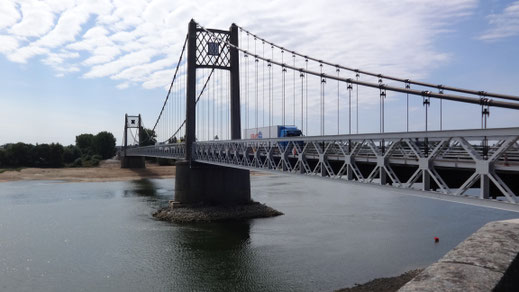 Loire flußaufwärts auf der Brücke nach Oudon