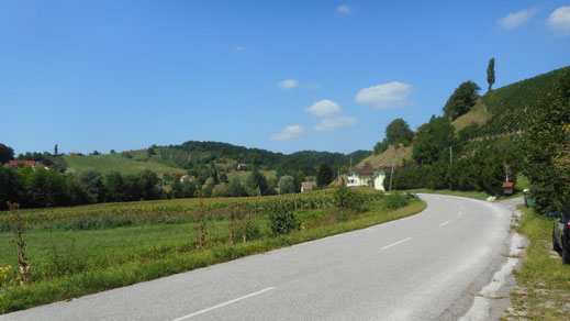 Von Marburg in Slowenien fahre ich vom Drautal in der Untersteiermark über einen Hügel nach Österreich ins Murtal in der Südoststeiermark, dann weiter entlang der Mur über Mureck nach Bad Radkersburg, wo ich spät abends ankomme.