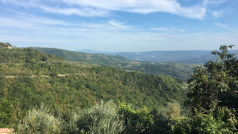 Auf einem 228 m hohen Hügel über dem Mirna Tal liegt die kleine Stadt Grožnjan in Zentralistrien.