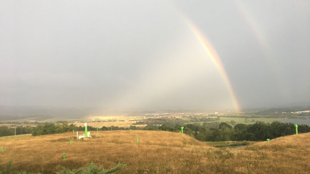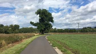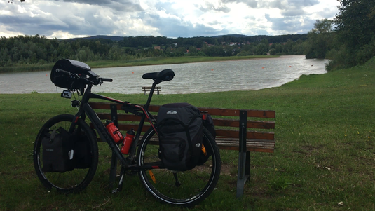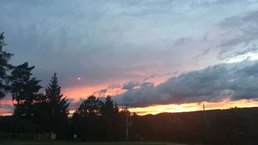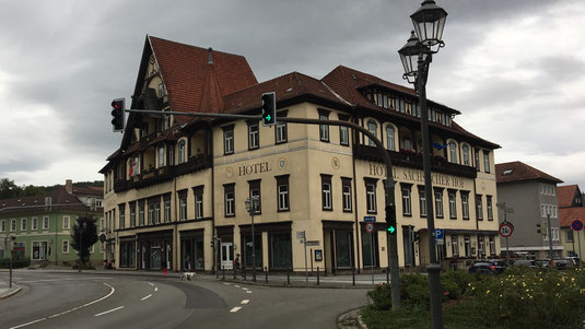 Ich komme in Bad Salzungen an, finde hier aber kein Quartier. Deshalb muss ich etwas zurück auf den Hügel "Frankenstein" auf der anderen Seite der Werra fahren. Bergauf! Oben angekommen, bin ich begeistert von der herrlichen Aussicht und dem schönen Sonnenuntergang.