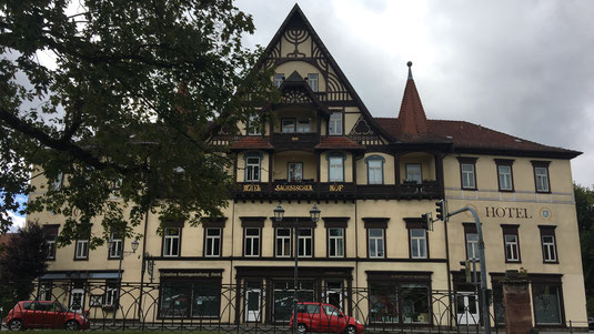 1843 erwerben die Fürsten von Thurn und Taxis den Sächsischen Hof und richten wieder eine Poststation ein. Das Postamt und die Posthalterei werden bis 1873 betrieben. 1900 entsteht das heutige Erscheinungsbild des Sächsischen Hofes. Der Bauherr erhöht das Gebäude um zwei Etagen. Die oberen Stockwerke erhalten Fachwerk, verzierte Balkone, kleine Spitztürme und Fensterrahmen im Jugendstil.