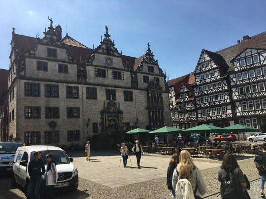 Die Rathaushalle im Erd-geschoss, als (Koph-Hus) bezeichnet, weist einen großen Saal auf, der einst die Warenbörse war, in der Kaufleute Verträge abschlos-sen. Die obere Rathaushalle wurde als Hochzeitssaal (Hochzeitshaus), heute für Ausstellungen und Empfänge, genutzt. Das Gebäude diente gemeinsam mit dem nahe gelegenen Mündener Packhof von 1840 an während des 19. Jahrhunderts der Lagerung von Waren des Fernhandels über die Flüsse Fulda, Weser und Werra.