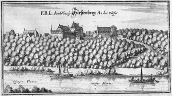 1899 beginnt man mit dem Bau einer ersten Weserbrücke. Bei den Arbeiten findet man auf dem Wesergrund Reste von Eichenplanken, in denen mehrere eiserne Kanonenkugeln aus der Zeit des Dreißigjährigen Krieges steckten. Eine der Kugeln ist im Innenhof der ehemaligen Burg zu sehen.