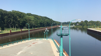 1953 wird die Staustufe Petershagen mit integriertem Laufwasserkraftwerk in Betrieb genommen, wodurch einerseits der Binnenschifffahrt ganzjährig ein größerer Tiefgang garantiert und andererseits die Flusslandschaft bei Petershagen entscheidend verändert wird.