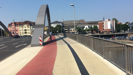 An der Ostseite der Weser komme ich am Bahnhof Minden an und fahre dann über die Weser in die Altstadt Minden.