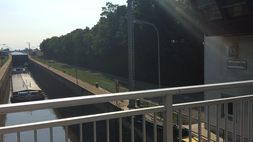 Die Schachtschleuse Minden wurde von 1911 bis 1914 im Rahmen des Baus des Mittellandkanals am Wasserstraßenkreuz Minden als Nordabstieg zur Weser gebaut und stellt damit die kürzeste Verbindung zwischen Mittellandkanal und Weser her. 1915 der Mittellandkanals eröffnet und das Wasserstraßenkreuz in Betrieb genommen.