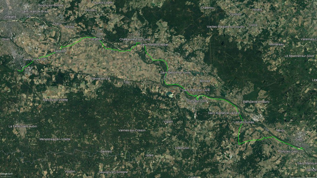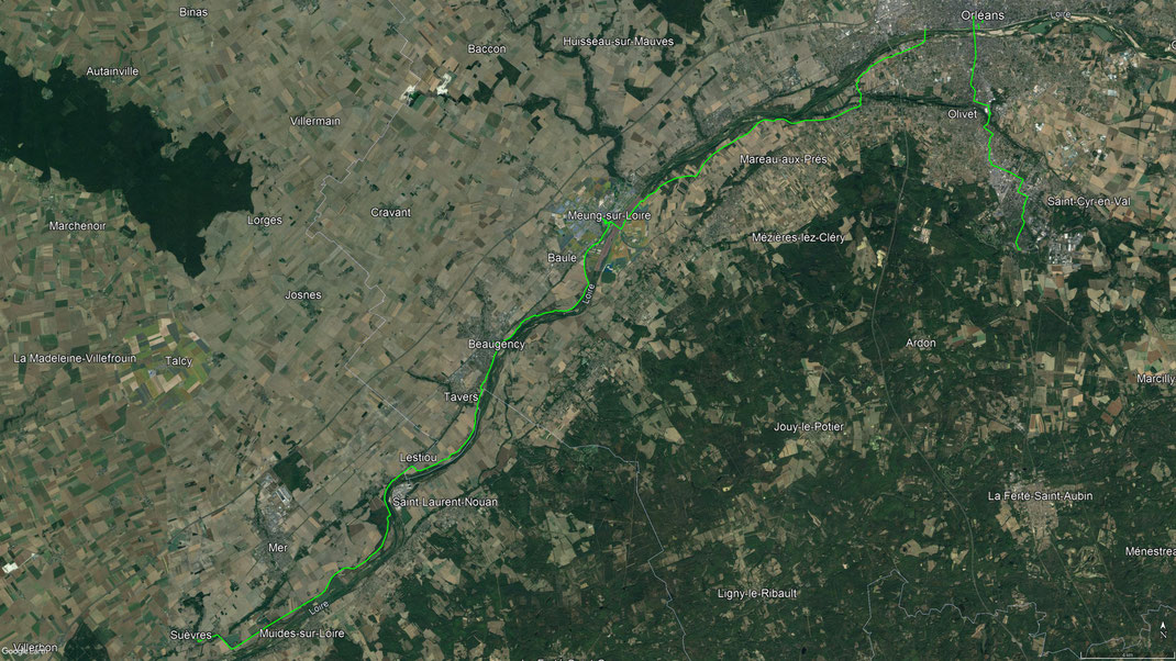 Über Olivet fahre ich nach Orleans in die Altstadt. Mal sehen, ob Jean d’Arc auf mich gewartet hat. Von dort fahre ich weiter der Loire entlang Richtung Atlantik. Ich komme durch Meung, Beaugency und schließlich in einen kleinen Ort Suevres. - 08.09.2021