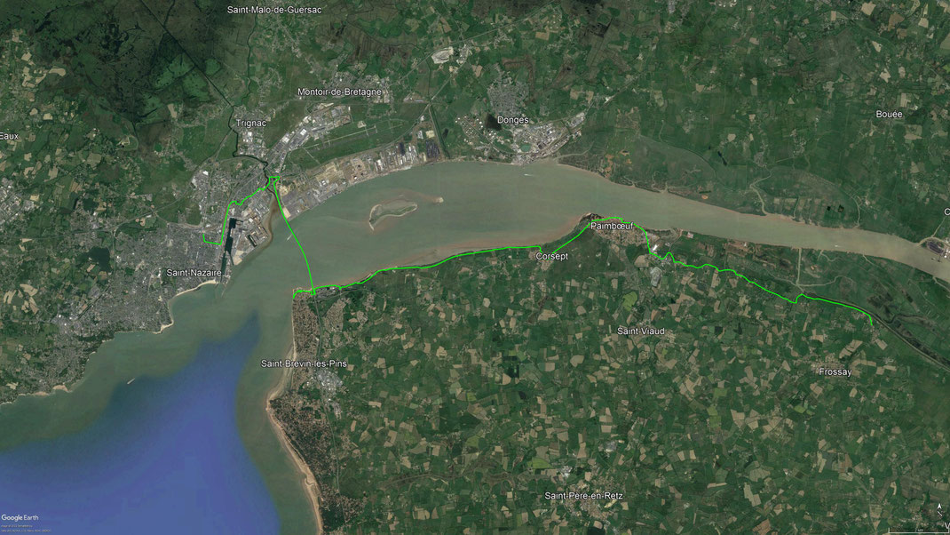 Heute habe ich nicht mehr weit bis zur Mündung der Loire und damit zum Atlantik. Ich komme durch Paimboeuf, dann vorbei an Hütten mit Fischernetzen und erreiche schließlich Saint Brevin les Pins und damit den Atlantik. Später fahre ich über die Brücke nach Saint Nazaire, dem Ende meiner Radtour. - 14.09.2021