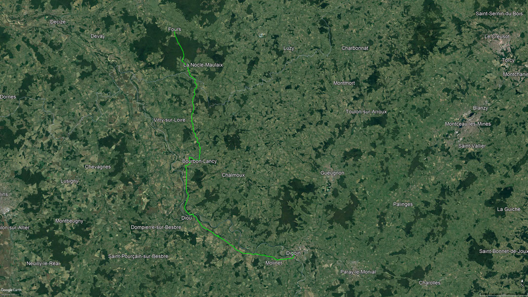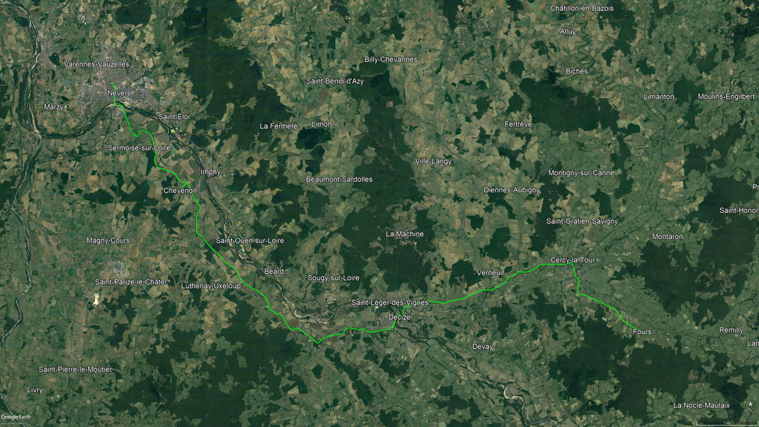Von Fours fahre ich wieder an die Loire nach Decize. Dann fahre ich heute noch weiter entlang der Loire bis Nevers. - 04.09.2021