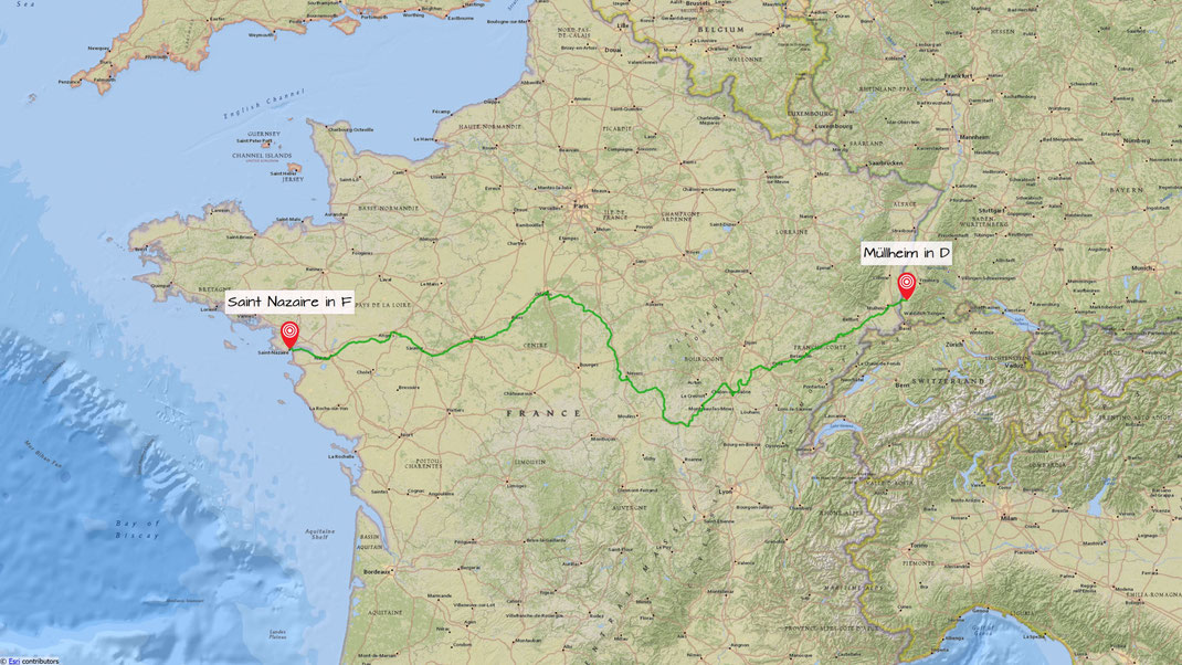 Radtour quer durch Frankreich von Müllheim im Markgräfler Land nach Saint Nazaire an der Mündung der Loire in den Atlantik.