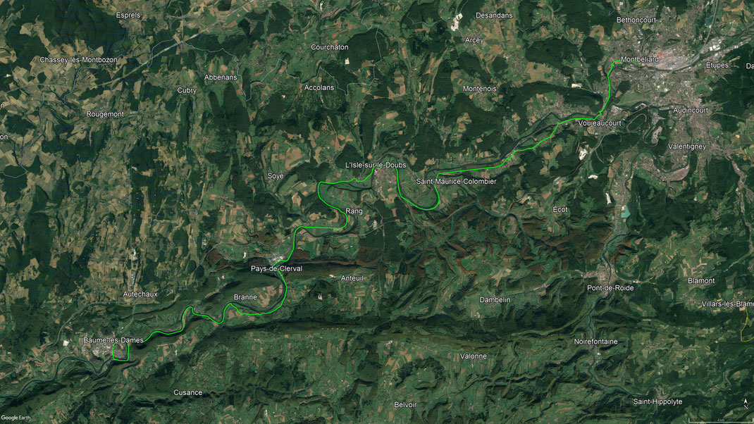 Von Montbéliard, dem ehemaligen Mömpelgard, radle ich in den nordwestlichen Ausläufern entlang des Verlaufes des Doubs über L'Isle sur le Doubs, Pay de Clerval, Hyévre Magny nach Baumes les Dames. - 28.08.2021