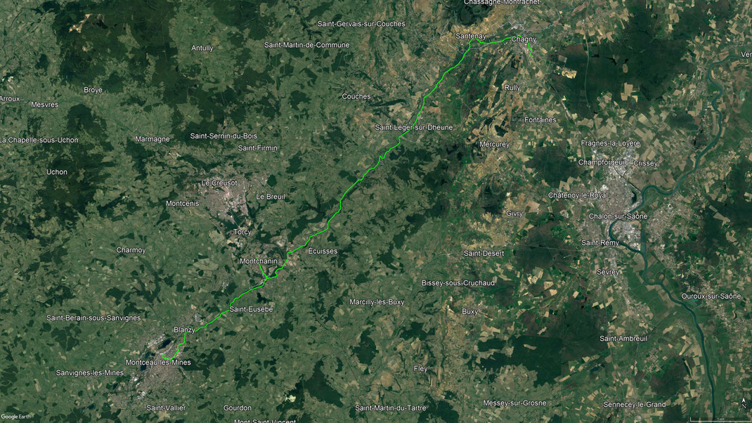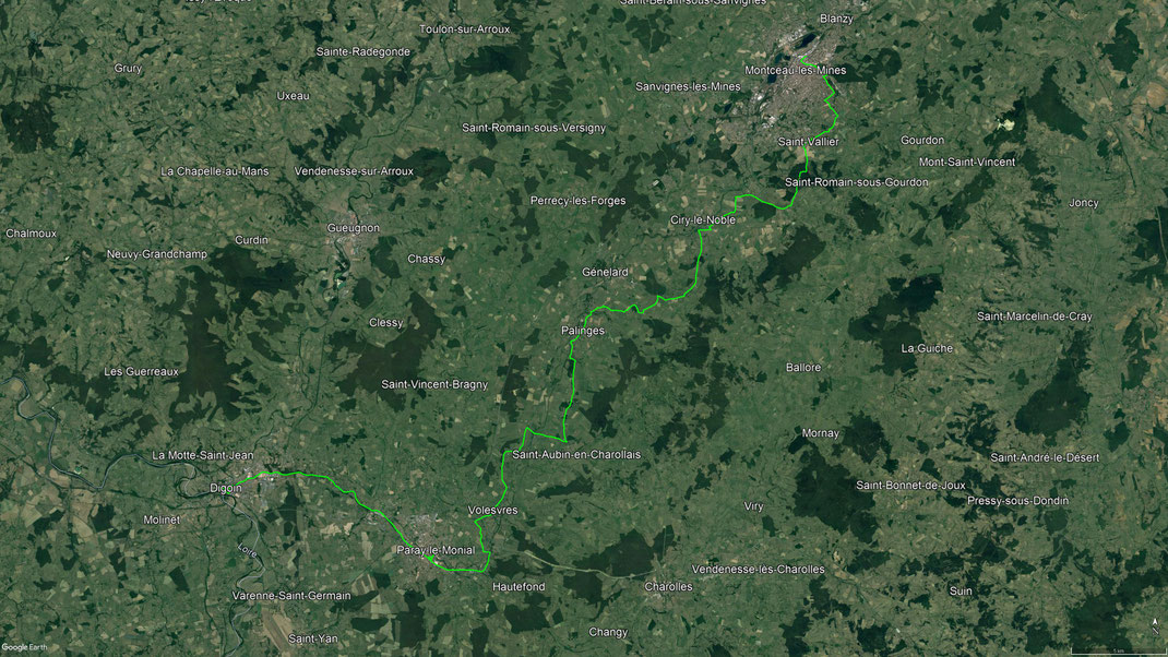 Heute Morgen, nachdem ich mir eine neue Kappe besorgte und die Schaltung reparieren ließ, fahre ich in Montceau les Mines los, komme durch Palinges, am Chateau Digoine vorbei, besuche kurz Paray le Monial, und komme letztlich abends in Digoin an. - 02.09.2021